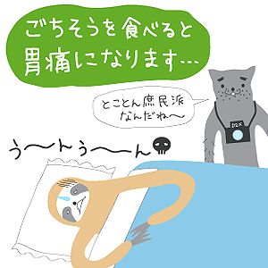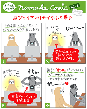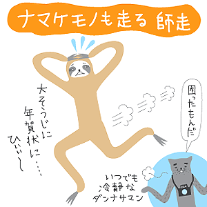いつも冷めた目で「ナマケトモ」を観察している「ダンナサマン」。